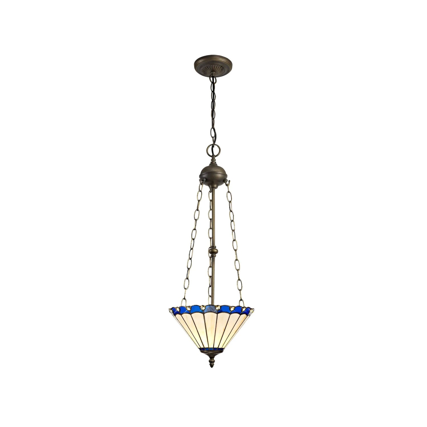 Williams 3 Light Uplighter Pendant E27 With 30cm Tiffany Shade, Blue/Cream/Crystal/Aged Antique Brass