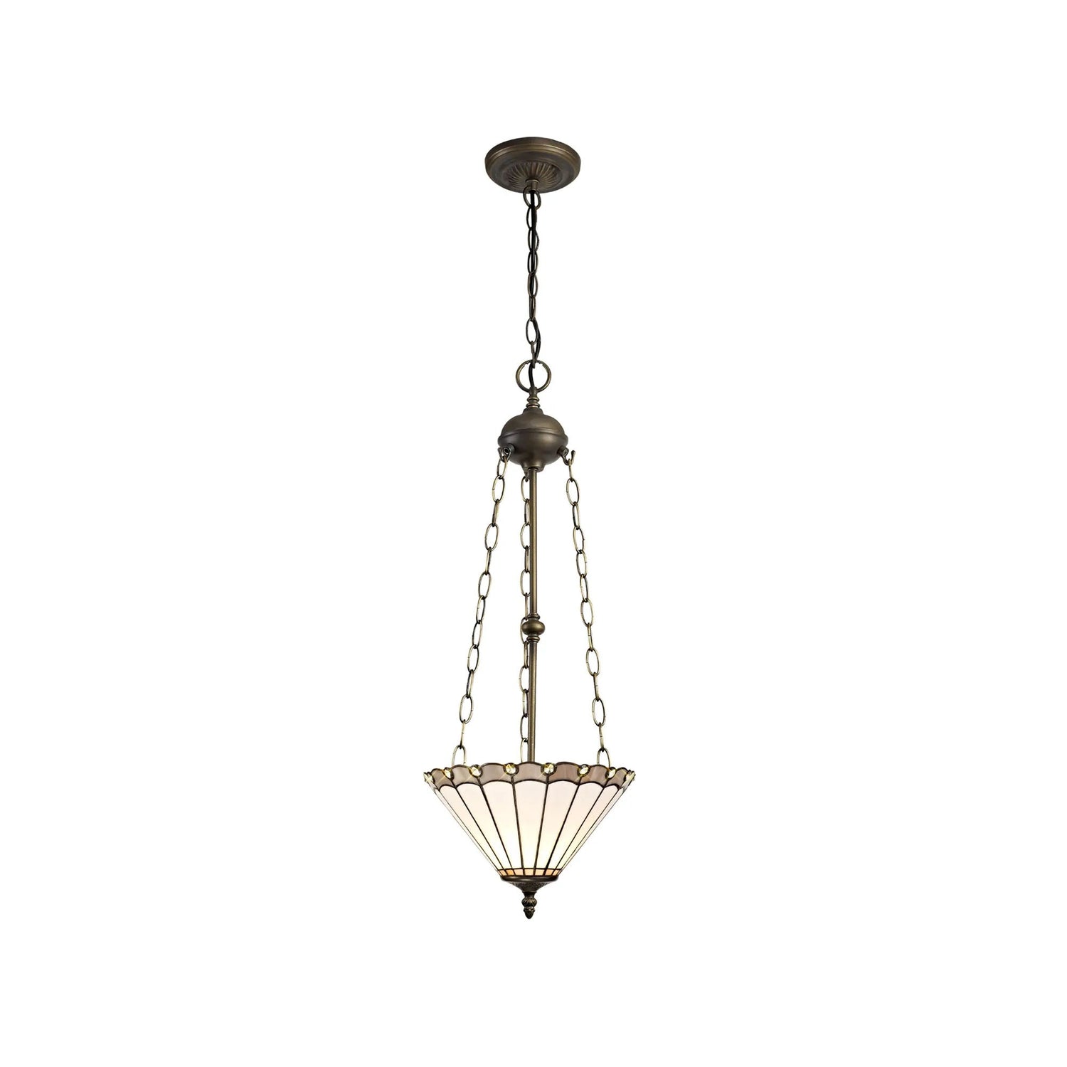 Williams 3 Light Uplighter Pendant E27 With 30cm Tiffany Shade, Grey/Cream/Crystal/Aged Antique Brass