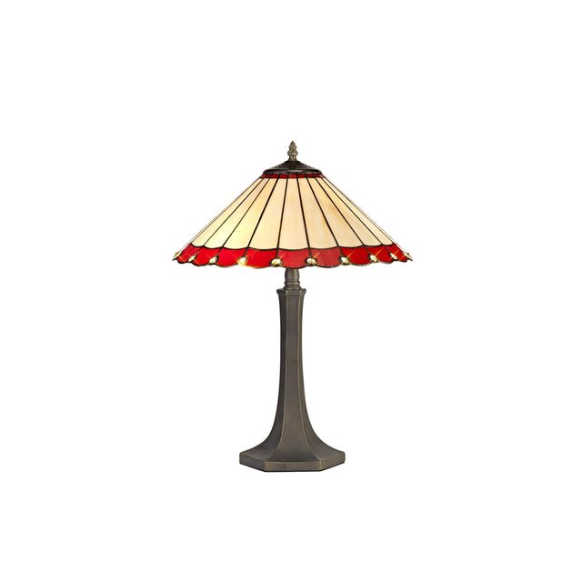 Williams 2 Light Octagonal Table Lamp E27 With 40cm Tiffany Shade, Red/Cream/Crystal/Aged Antique Brass
