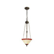 Williams 3 Light Uplighter Pendant E27 With 30cm Tiffany Shade, Red/Cream/Crystal/Aged Antique Brass