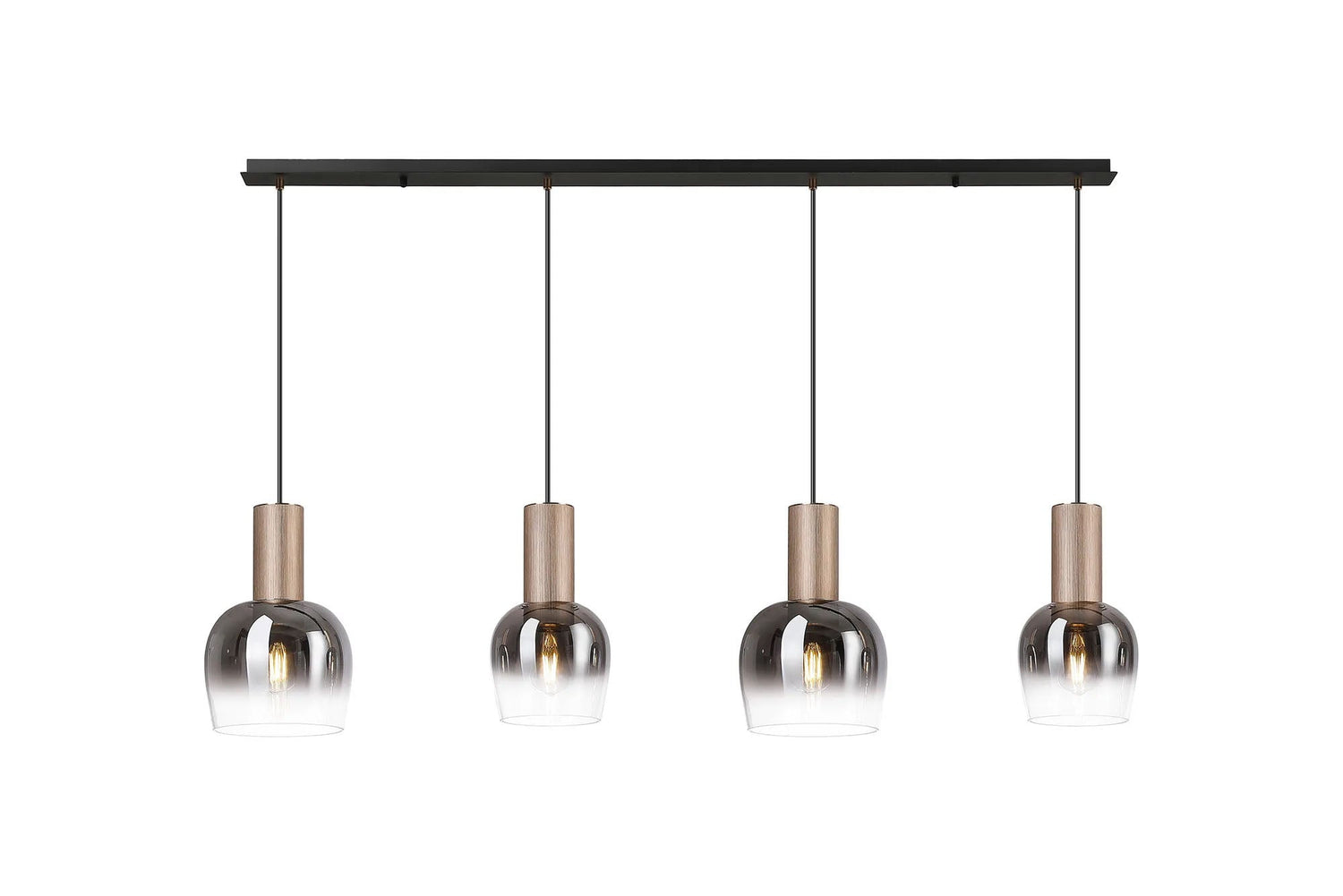 Withe 1.4m Linear Pendant, 4 x E27, Titanium Gold/Satin Black/Smoke Fade Wine Glass