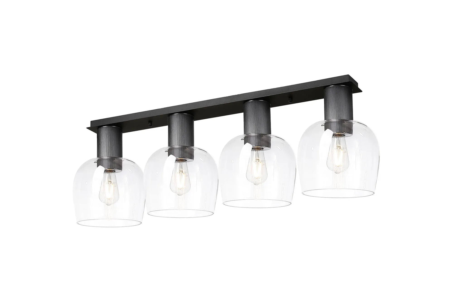 Withe 105.5 x 23.5cm Linear Ceiling Light, 4 x E27, Gun Metal/Satin Black/Clear Wine Glass