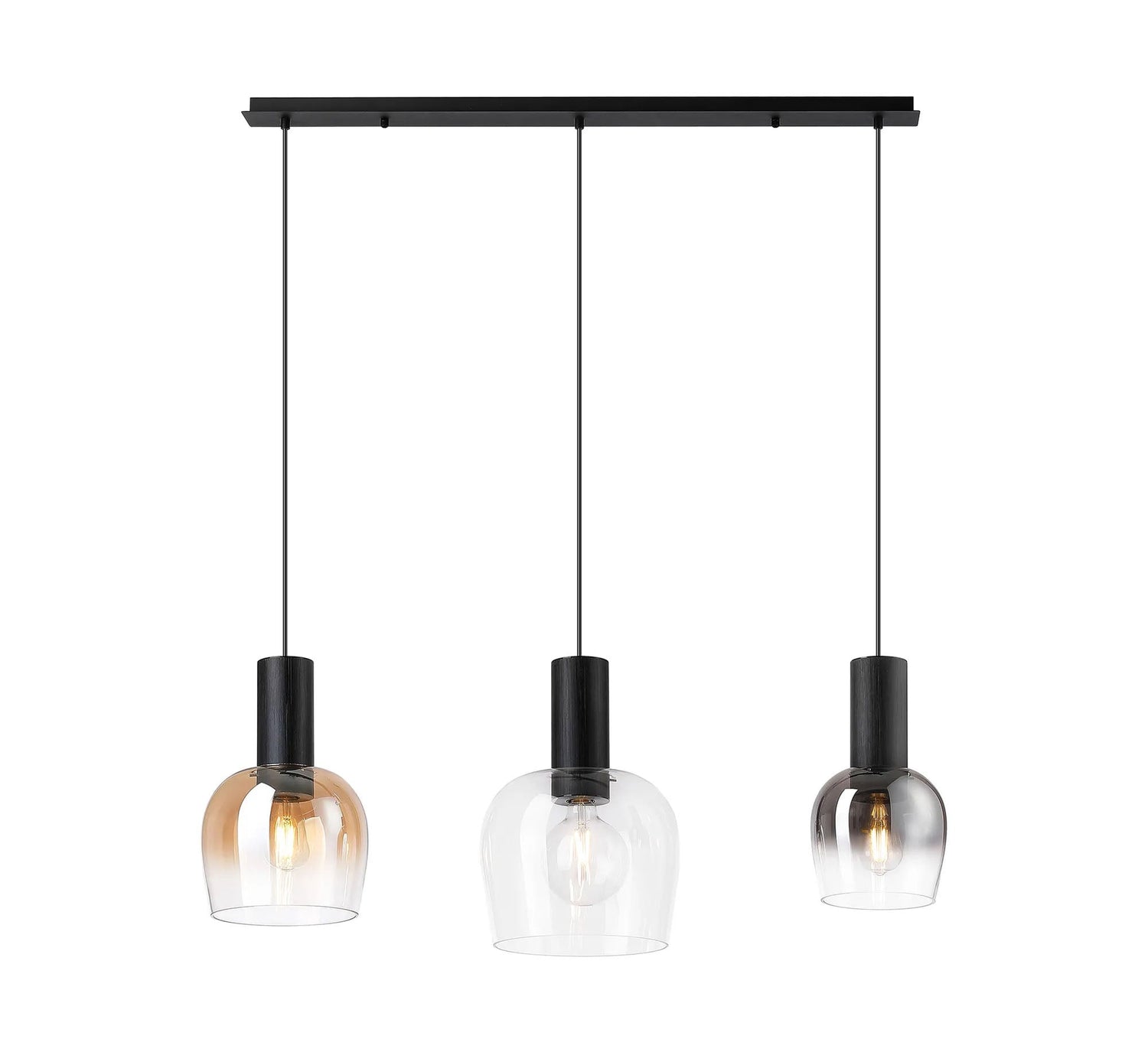 Withe 1m Linear Pendant, 3 x E27, Satin Black/Clear/Amber Fade/Smoke Fade Wine Glass
