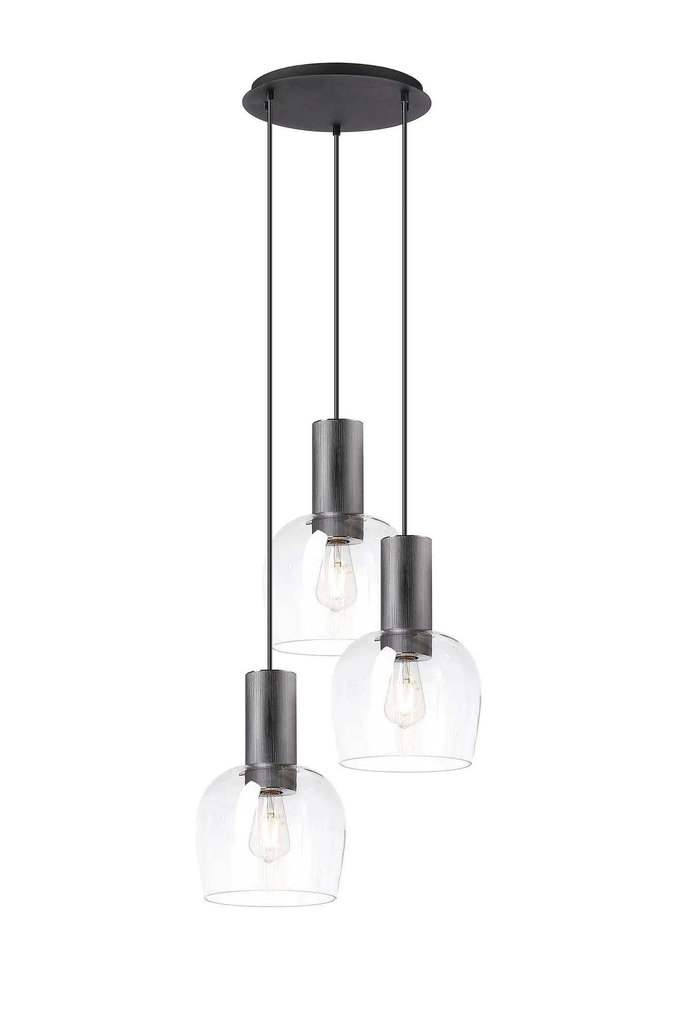 Withe 47.5cm Round Pendant, 3 x E27, Gun Metal/Satin Black/Clear Wine Glass