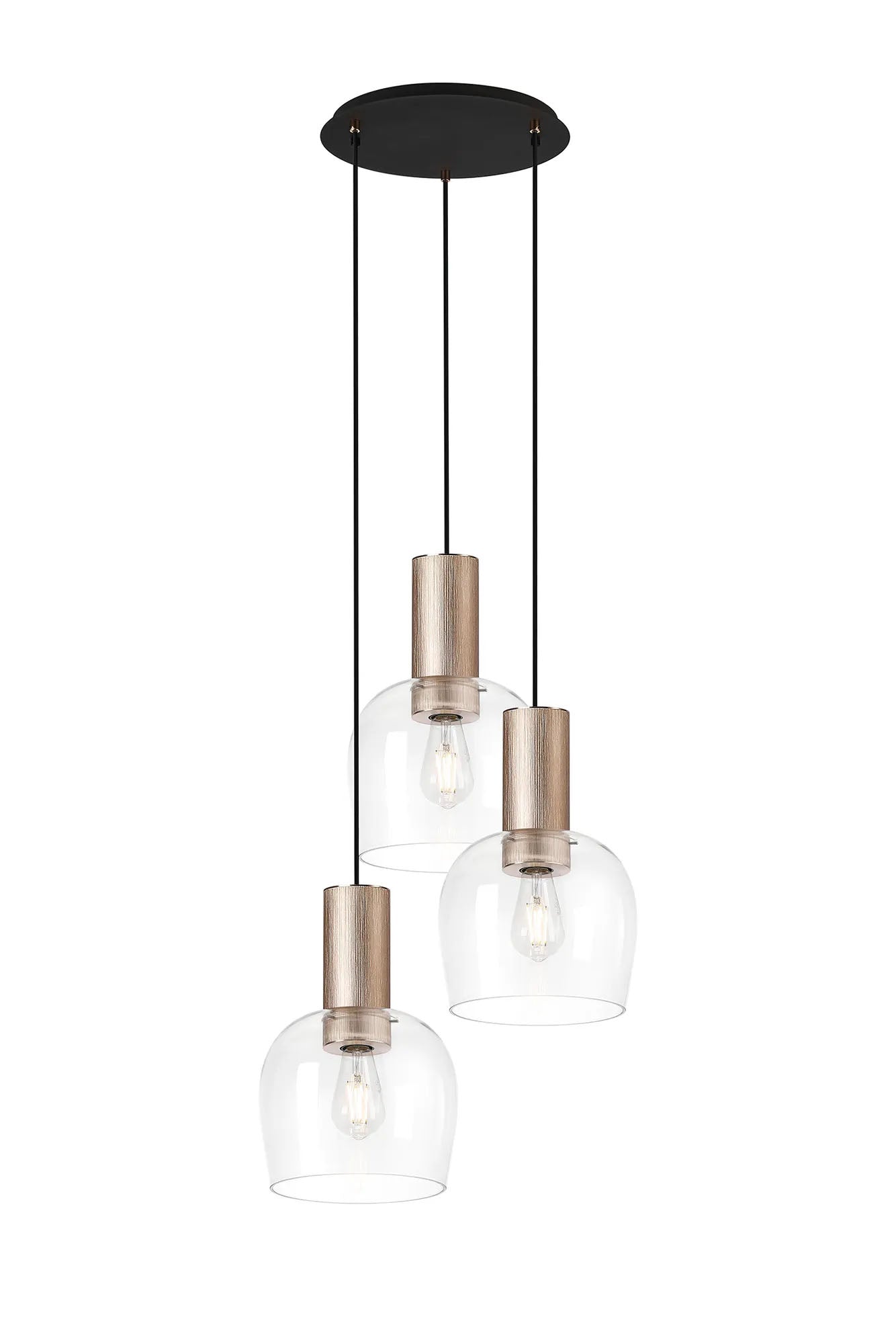 Withe 47.5cm Round Pendant, 3 x E27, Titanium Gold/Satin Black/Clear Wine Glass