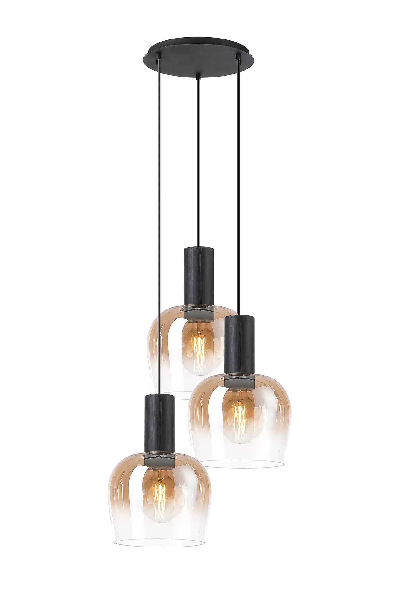 Withe 50cm Round Pendant, 3 x E27, Satin Black/Amber Fade Wine Glass