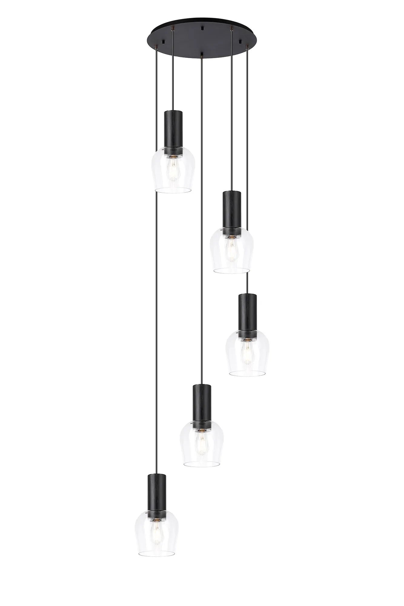 Withe 62.5cm Round Pendant, 5 x E27, Satin Black/Clear Wine Glass