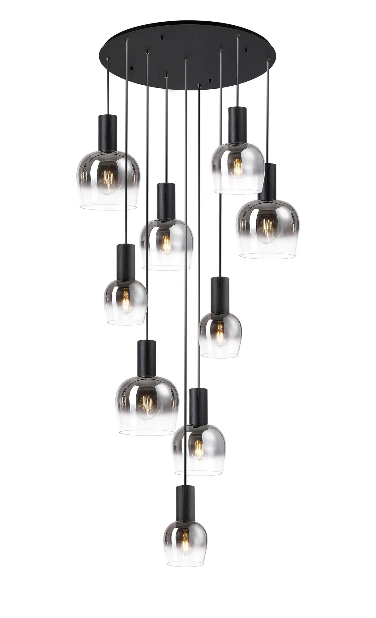 Withe 62.5cm Round Pendant, 9 x E27, Satin Black/Smoke Fade Wine Glass Item Weight: 18kg is backordered and will ship as soon as it is back in stock.