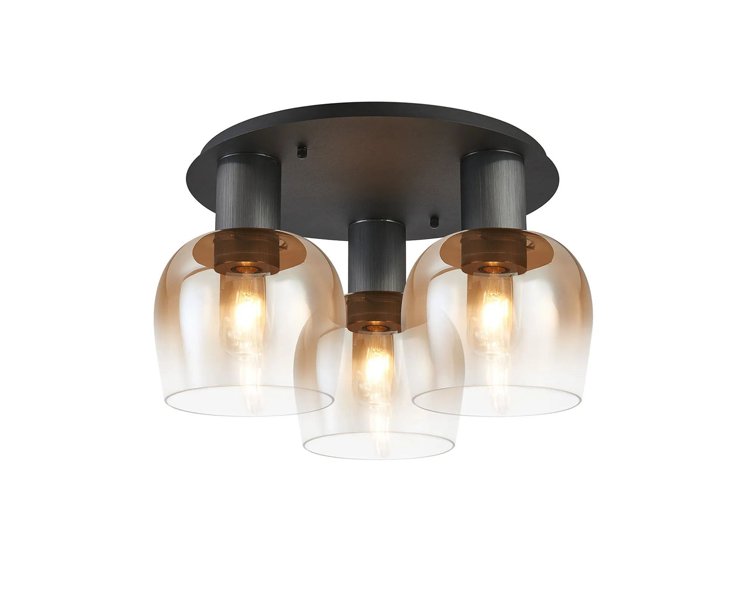 Withe 63.5cm Round Ceiling Light, 3 x E27, Gun Metal/Satin Black/Amber Fade Wine Glass is backordered and will ship as soon as it is back in stock.