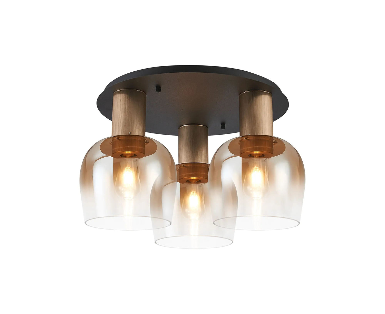 Withe 63.5cm Round Ceiling Light, 3 x E27, Titanium Gold/Satin Black/Amber Fade Wine Glass