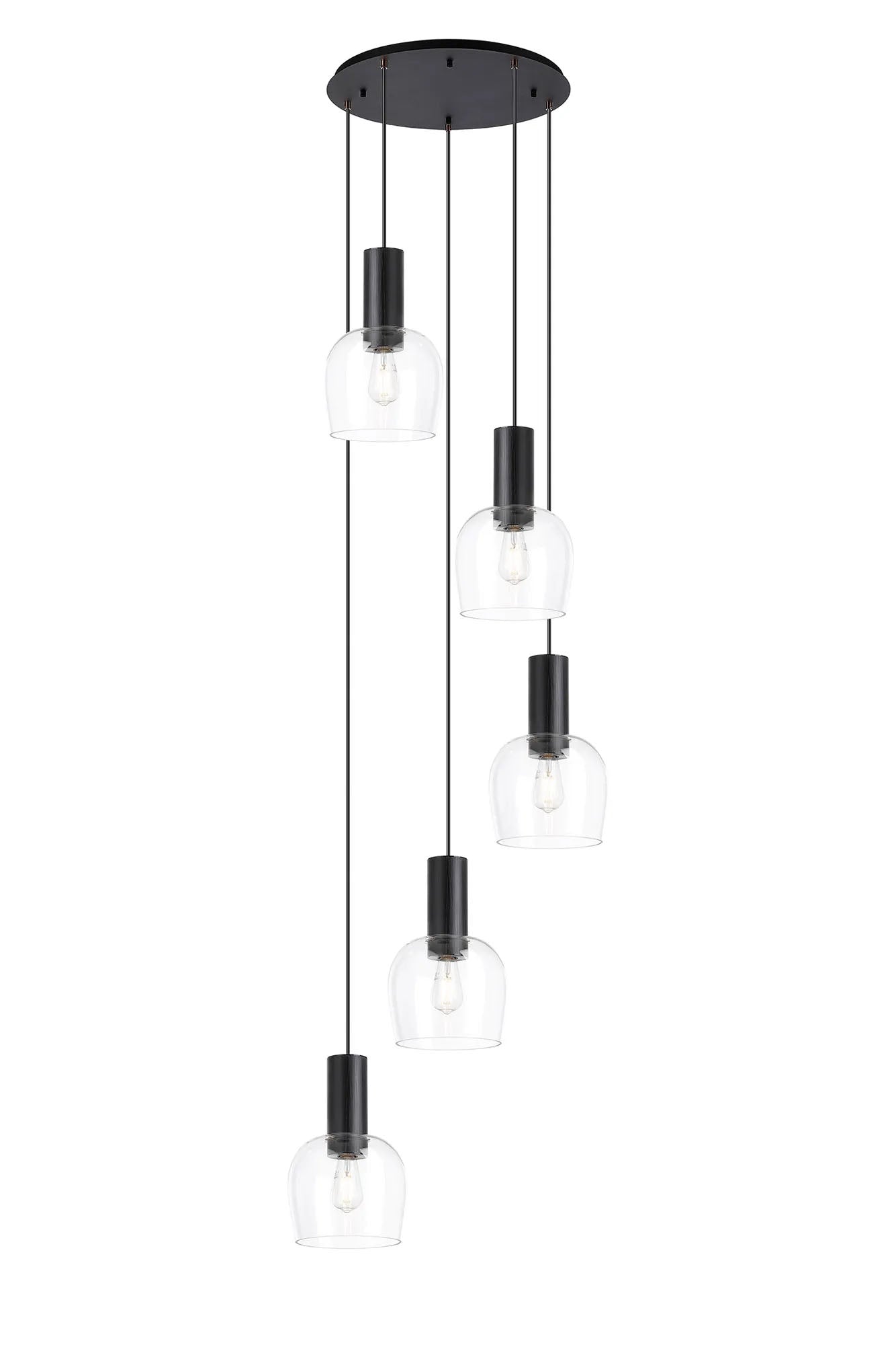 Withe 65.5cm Round Pendant, 5 x E27, Satin Black/Clear Wine Glass